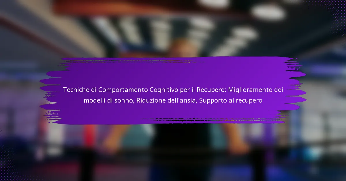 Le tecniche comportamentali cognitive sono strategie derivate dalla terapia comportamentale cognitiva (CBT) volte a migliorare la salute mentale affrontando schemi di pensiero e comportamenti negativi. Queste tecniche si concentrano sul miglioramento del recupero attraverso migliori modelli di sonno, riduzione dell’ansia e fornitura di supporto durante il processo di guarigione.