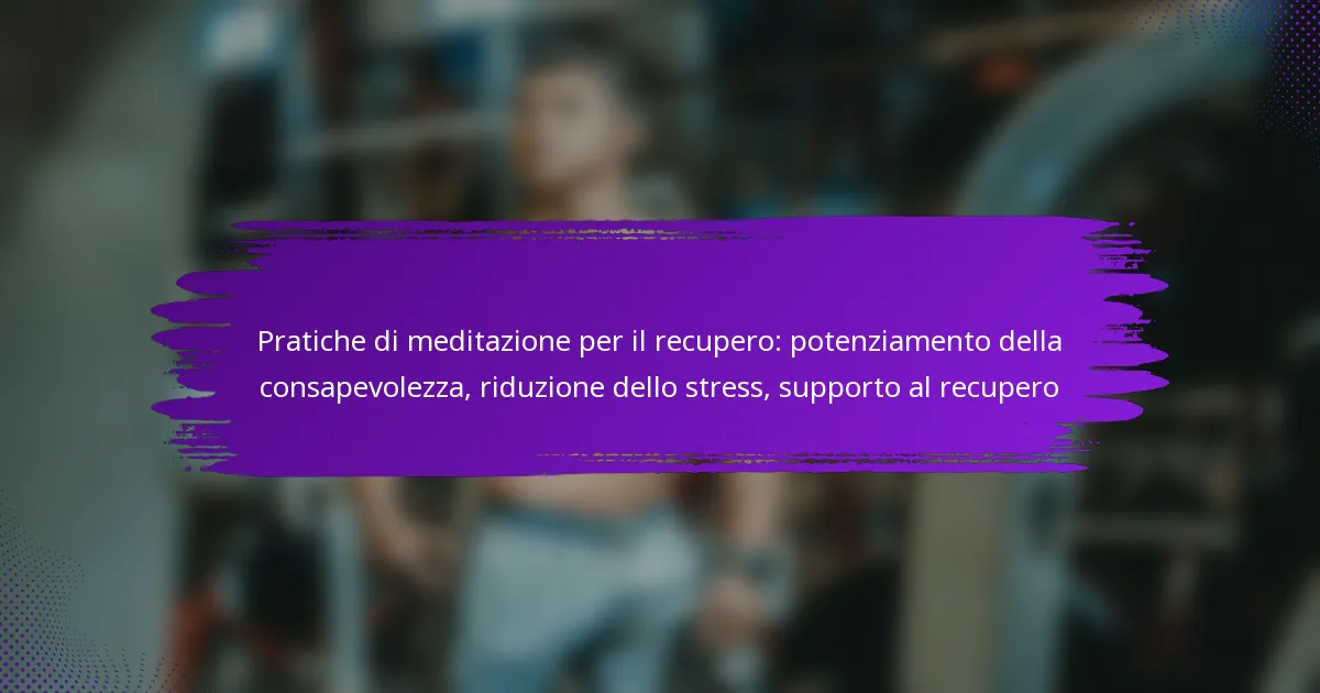 Le principali pratiche di meditazione per il recupero si concentrano sul miglioramento della consapevolezza, sulla riduzione dello stress e sul supporto al benessere generale. Tecniche come la meditazione mindfulness, l’immaginazione guidata, la scansione del corpo, la meditazione trascendentale e il lavoro sul respiro possono aiutare significativamente nel recupero emotivo e fisico.